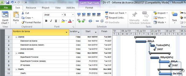 Lo primero que hice fue abrir un project que ya tenía con Project 2010. A primera vista, eso no representó ningún cambio: